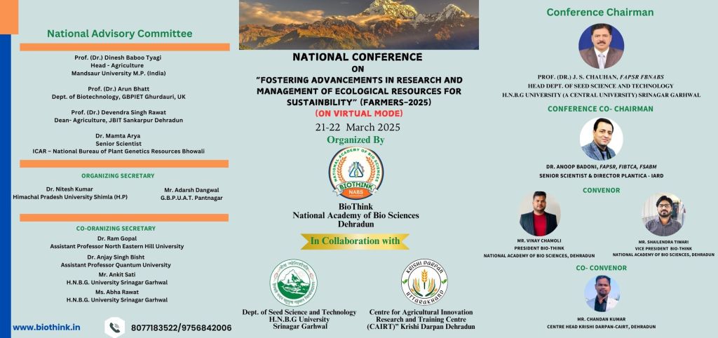 “Fostering Advancements in Research and Management of Ecological Resources for Sustainability” (On Virtual Mode)