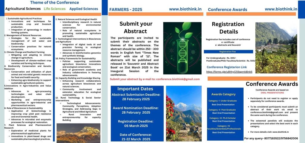 - Overview: The National conference will focus on the critical interconnections between plants, humans, and the Earth, emphasizing sustainability. It will provide an excellent platform for researchers, academics, industry professionals, and students to share their knowledge, exchange ideas, and discuss the latest advancements in agriculture, applied, and life sciences.